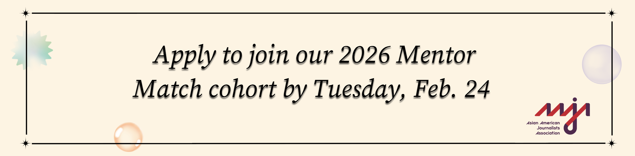We aim to determine final matches by the end of March 2026. All mentors and mentees must have a paid, active AAJA membership to participate in the program. To be an eligible candidate, become an AAJA member here.