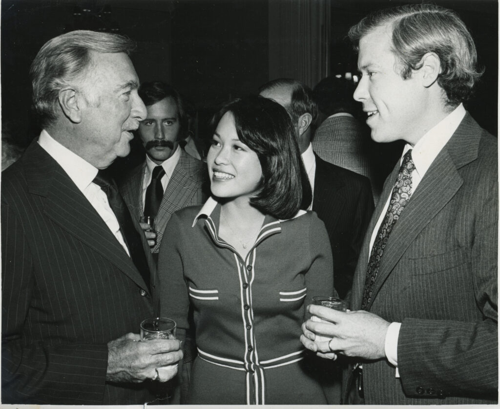 Frank Kwan, Tritia Toyota, and Bill Sing plan for AAJA’s Scholarship Benefit Banquet, to take place at the Hyatt Regency Hotel in Los Angeles, 1982.