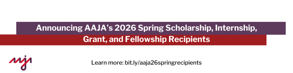 The Asian American Journalists Association (AAJA) is proud to announce the recipients of our Fall/Winter 2025 scholarships, fellowships, and internships. These opportunities support students and
